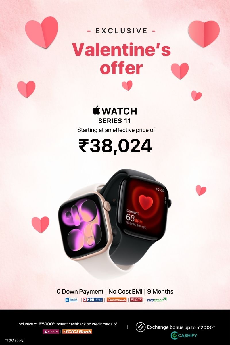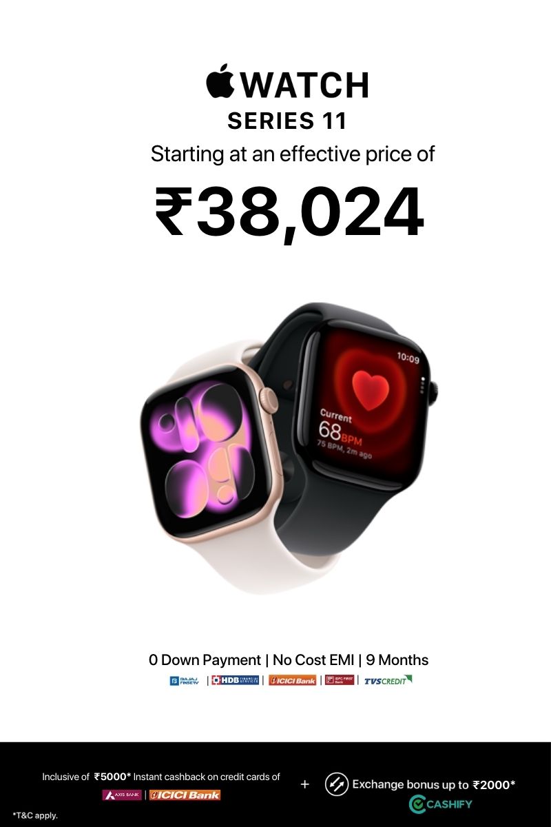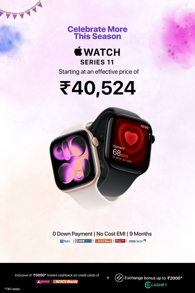 Get up to ₹5,000 cashback on Apple Watch Series 11 GPS Models.