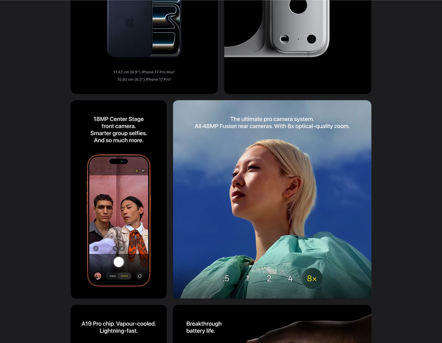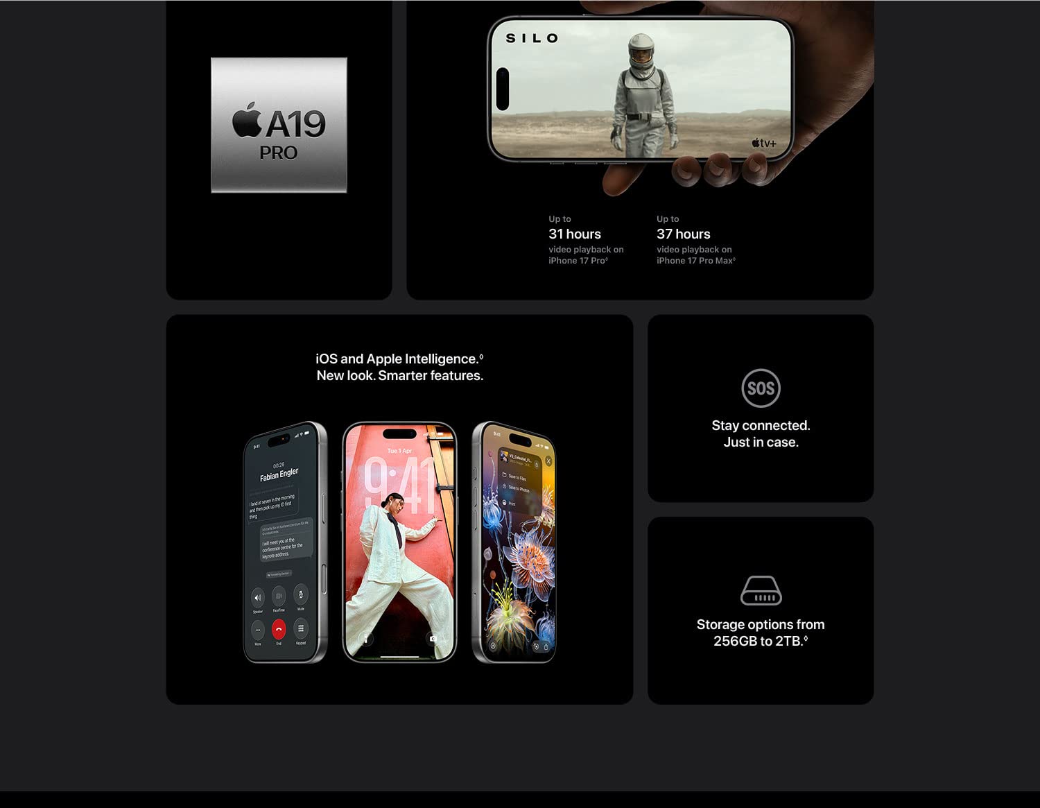 Introducing iPhone 17 Pro and iPhone 17 Pro Max, designed from the inside out to be the most powerful iPhone models ever made. At the core of the new design is a heat-forged aluminium unibody enclosure that maximises performance, battery capacity and durability.