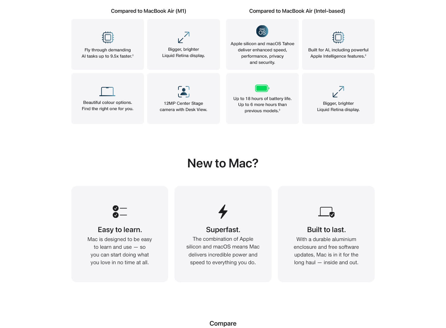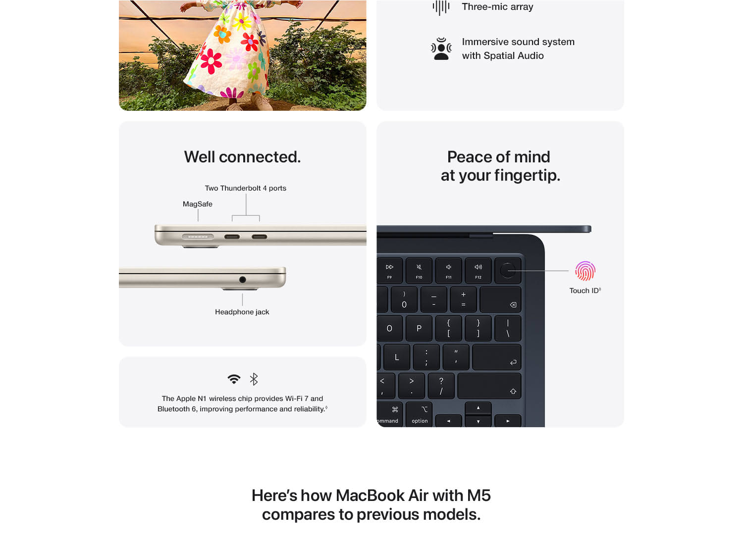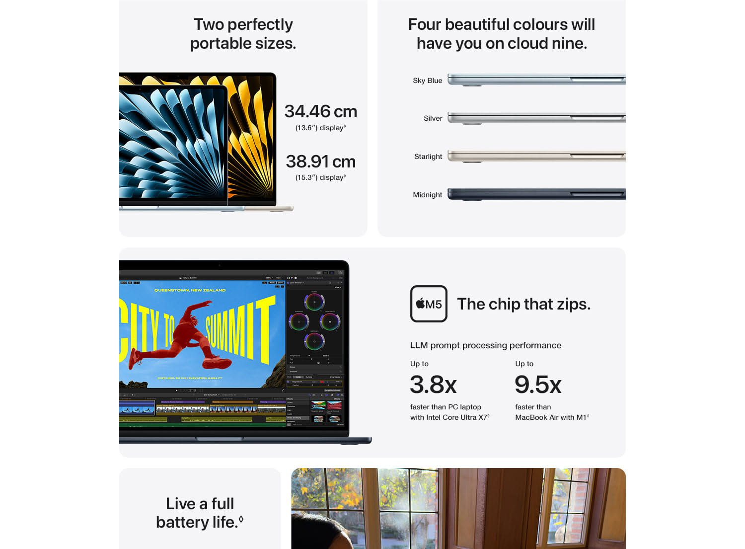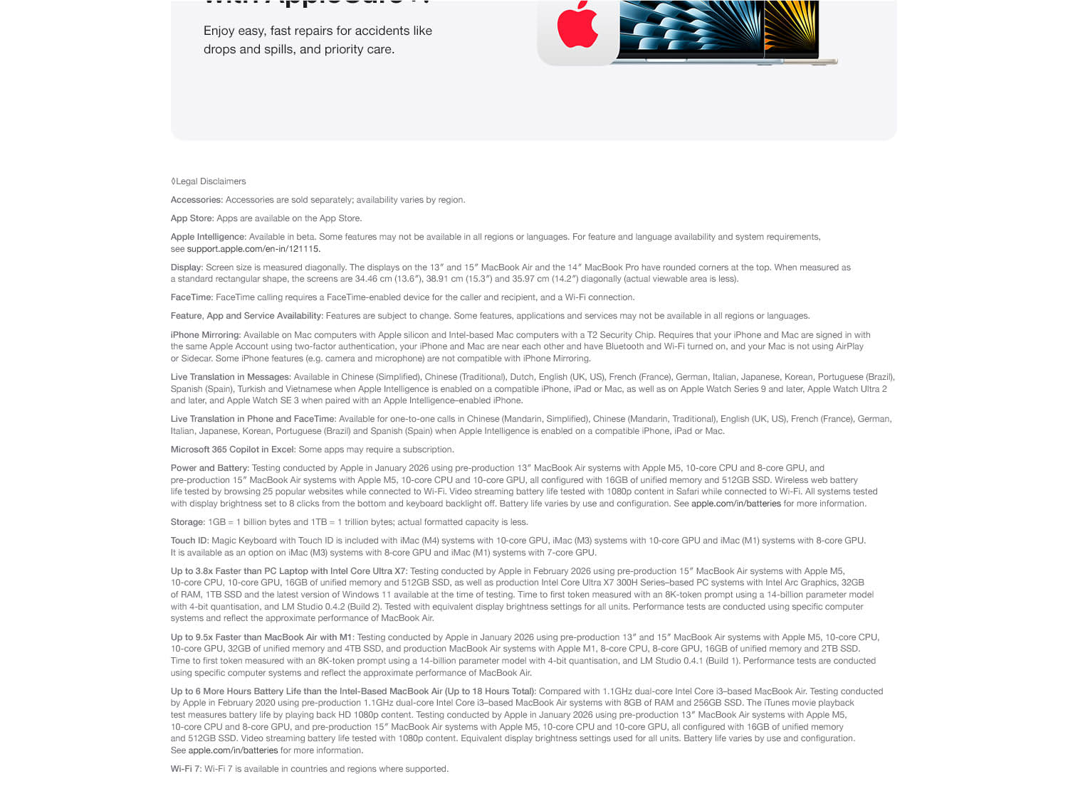 MacBook Air with the M5 chip packs blazing speed and powerful AI capabilities into an incredibly portable design. With Apple Intelligence, up to 18 hours of battery life and fast SSD storage starting from 512GB, you can work, create and play anywhere life takes you.